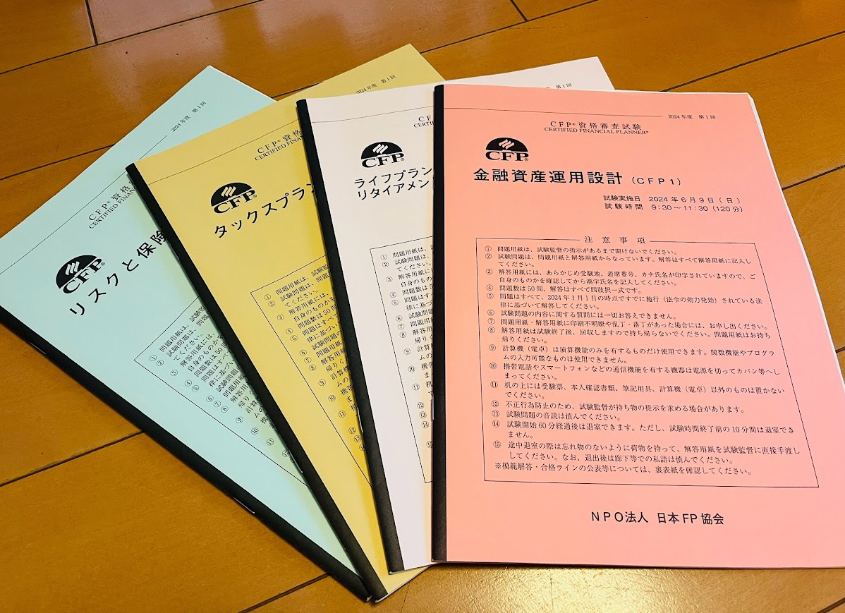 2024年6月のCFP試験で「金融資産運用設計」「ライフプランニング・リタイアメントインカム」「リスクと保険」「タックスプランニング」の4課目に合格している私は、残り2課目の合格でCFPになることができます。